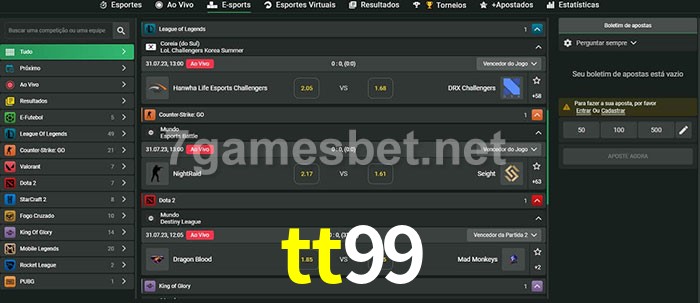 O tt99 oferece uma grande seleção de opções de apostas em e-sports com probabilidades competitivas